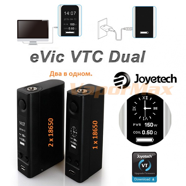 eVic VTC Dual 150W - сочетает в себе уникальный и привлекательный дизайн с супер большим OLED-экраном.