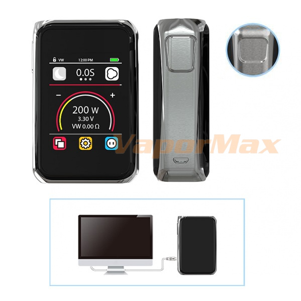 Дополнительные возможности: сенсорный экран, кнопка с виброоткликом, быстрая зарядка (2А), мультизащита аккумулятора, предварительный нагрев спирали, часы, «обои».