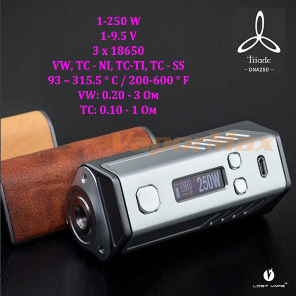 Великолепный мод от компании Lost Vape. Оснащен последней версией микросхемы DNA250 от американской компании Evolv.